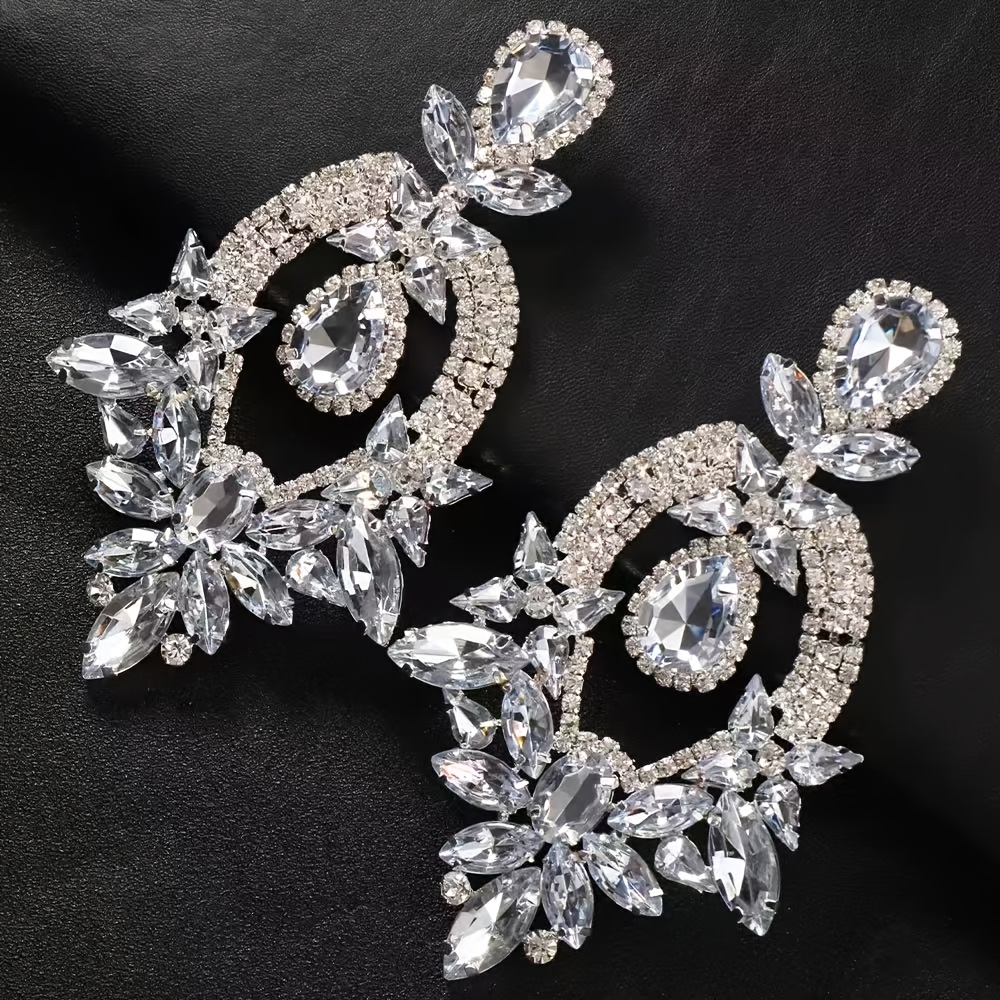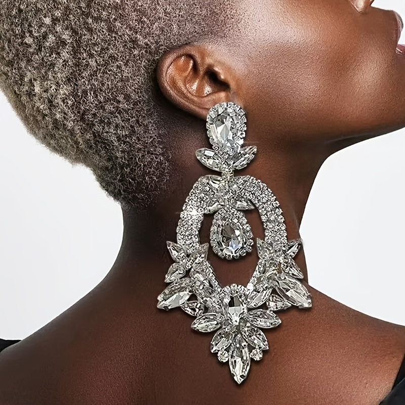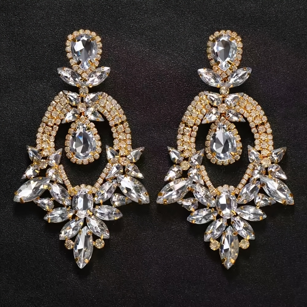 Luxurious Rhinestone Drop Earrings for Women - Exaggerated Sparkling Statement J